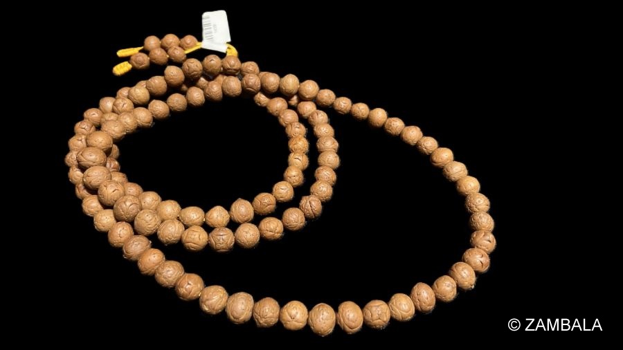 菩提,是梵語bodhi音譯,是覺悟、智慧、知識、道路的意思,廣義講是斷絕世間煩惱而成就涅盤的智慧。 因佛祖釋迦牟尼在菩提樹悉道,菩提即為覺悟,成就佛果之意。 據佛經記載,用菩提子念佛,可獲無量倍功德,因此,菩提子成為最廣泛使用的法器之一無論顯密都是如此。 菩提樹者,即畢缽羅之樹也。 昔佛在世,高數百尺,屢經殘伐,尤高四、五丈。 佛坐其下成等正覺,因而謂之菩提樹焉。 而以菩提來命名的佛珠質料,總計有三十多個品種。 這其中有依產地來命名的,如天台菩提、豚菩提等;有依紋理來命名的,如星月菩提、鳳眼菩提等。 攜帶一串菩提佛珠,是會給人增福無量的。 正因為菩提子有如此深遠的意義,因此通常將許多佛珠皆命名為菩提.