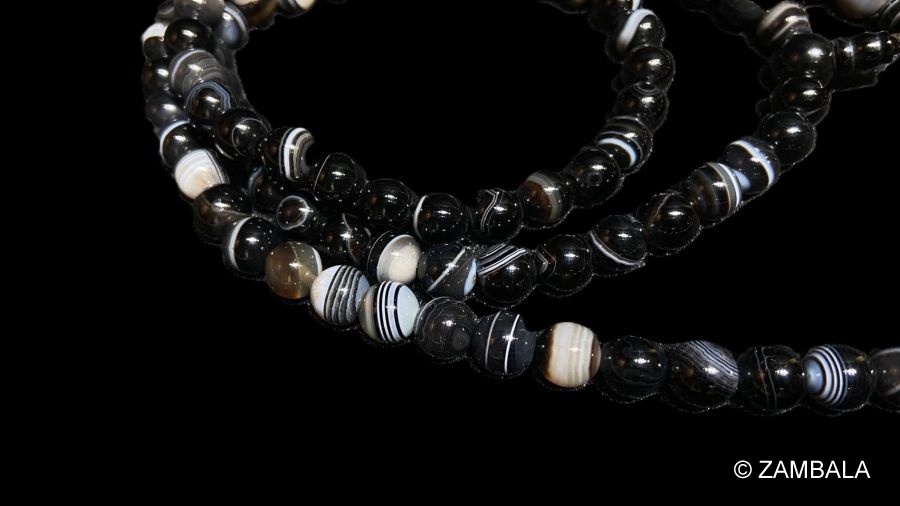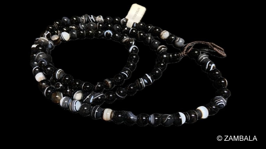 藥師珠在藏傳佛教中具有深遠的象徵意義,它與藥師佛的加持力密切相關,被認為能夠驅邪避災、保佑健康與增長智慧。這種珠子通常由瑪瑙製成,並刻有環狀線條或眼睛圖騰,象徵佛法的通達與護佑。
