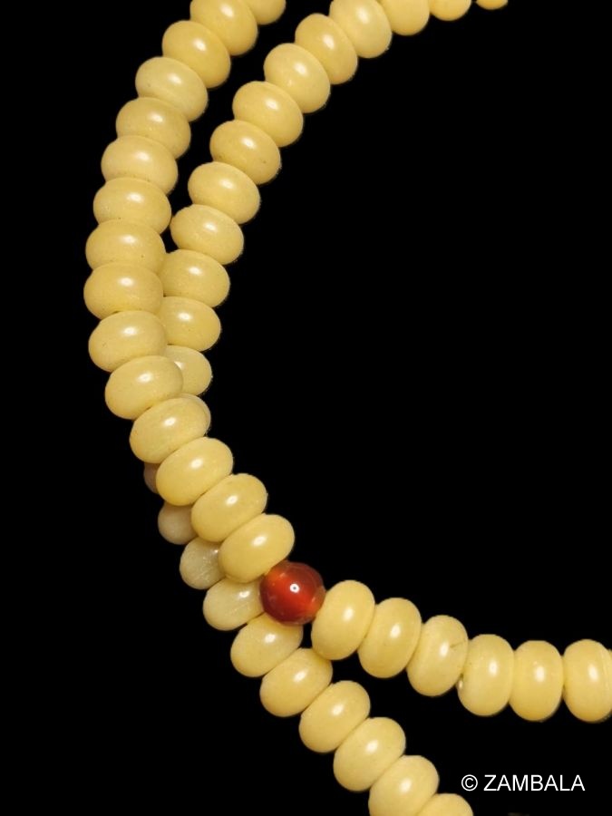 - 菩提根念珠是近15~20年才在漢傳佛教圈流行起來的「新興」念珠材料。早期(2000年前後)多由尼泊爾當地人手工挖取百年以上老樹的根莖,經長年盤玩後呈現象牙白或米白色,質地極其堅硬細膩,因此被稱為「菩提根」。