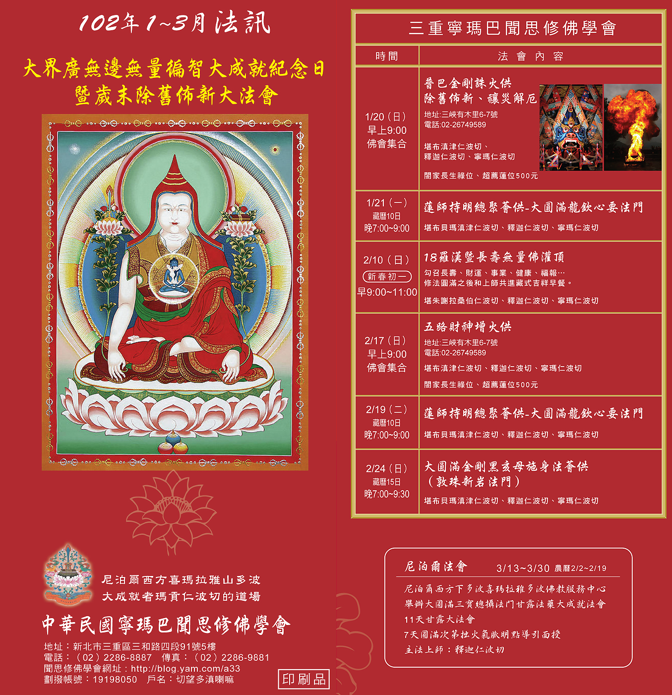 | 大界廣無邊無量偏智大成就紀念日 歲末除舊佈新大法會 |