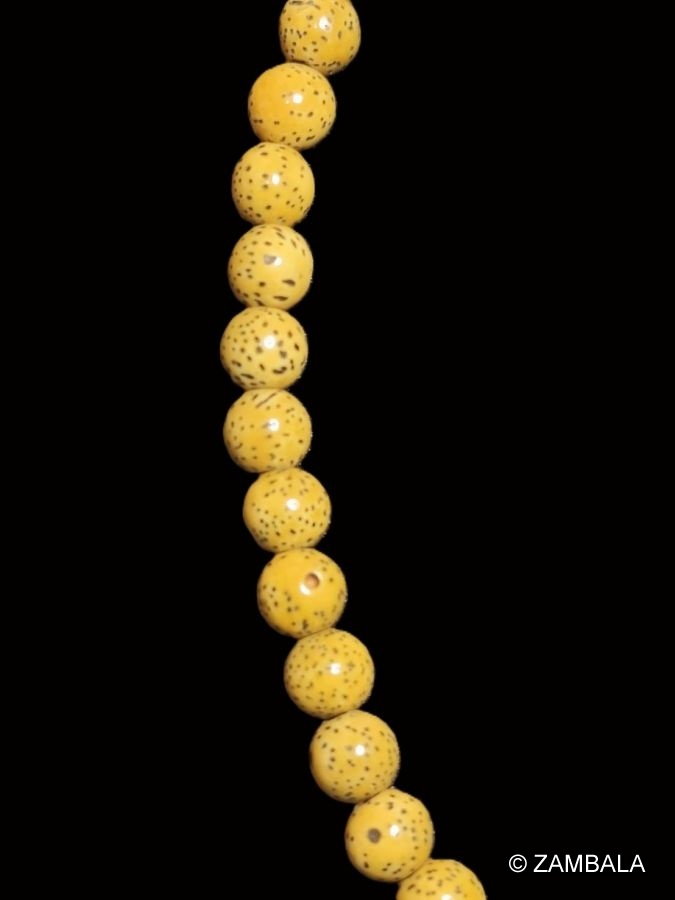 星月菩提本質上是熱帶黃藤的種子,因其天然「星月」紋理與極高的硬度、耐久性,被佛教徒賦予了神聖意義,成為藏漢佛教最重要、最普及的念珠材質之一。它不僅是持咒念佛的工具,更承載了無數修行者的願力與時光,盤得越老越通透,也象徵修行越深越圓滿,因此有「一串星月、一生佛緣」的美譽。