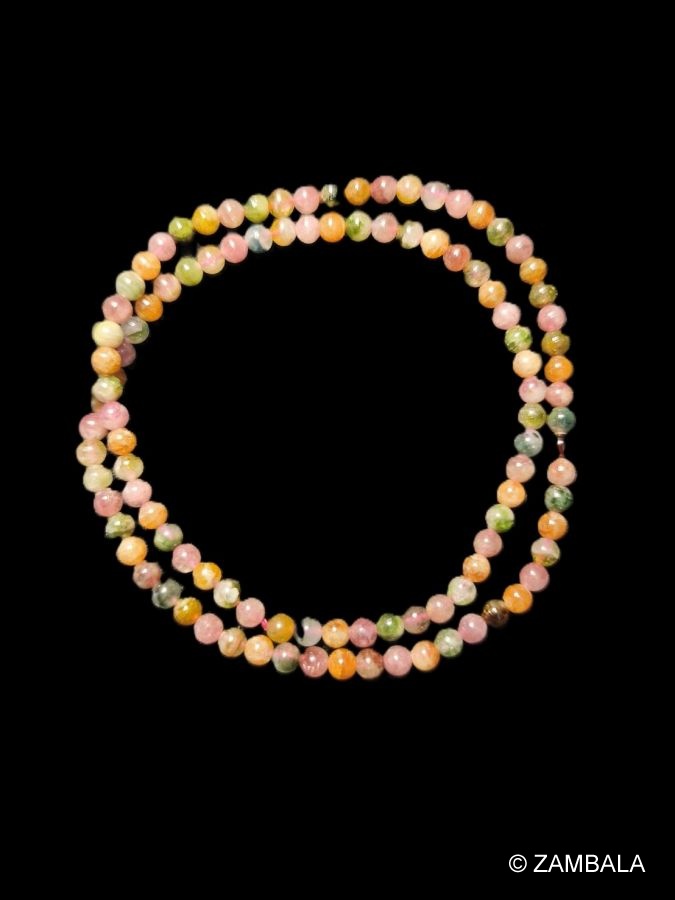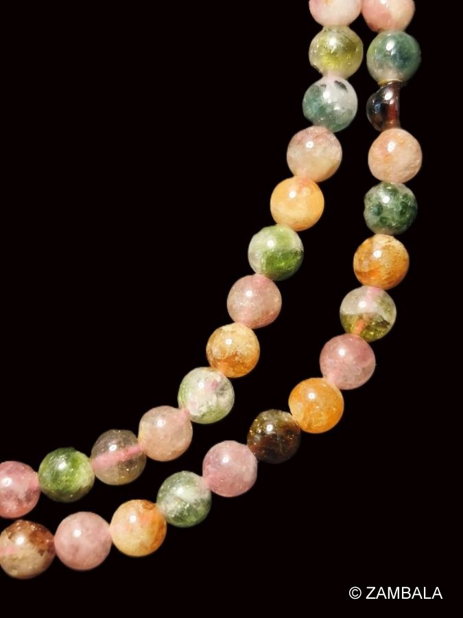 Tourmaline(中文稱「碧璽」或「電氣石」)是一種天然寶石,近年來在佛教徒與修行者之間越來越受歡迎,被用來製作念珠(mala,108顆或手串形式)。以下從成分、由來,以及對佛教修行的影響三方面來詳細說明: